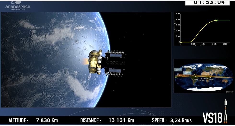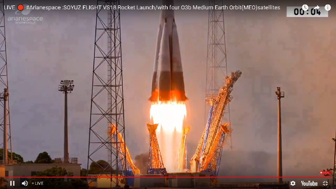 Inzwischen sind alle 4 "O3b"- Satelliten planmäßig und auf den korrekten Positionen im Zielorbit ausgesetzt, der erste 20:11 Uhr und der letzte 20:32 Uhr