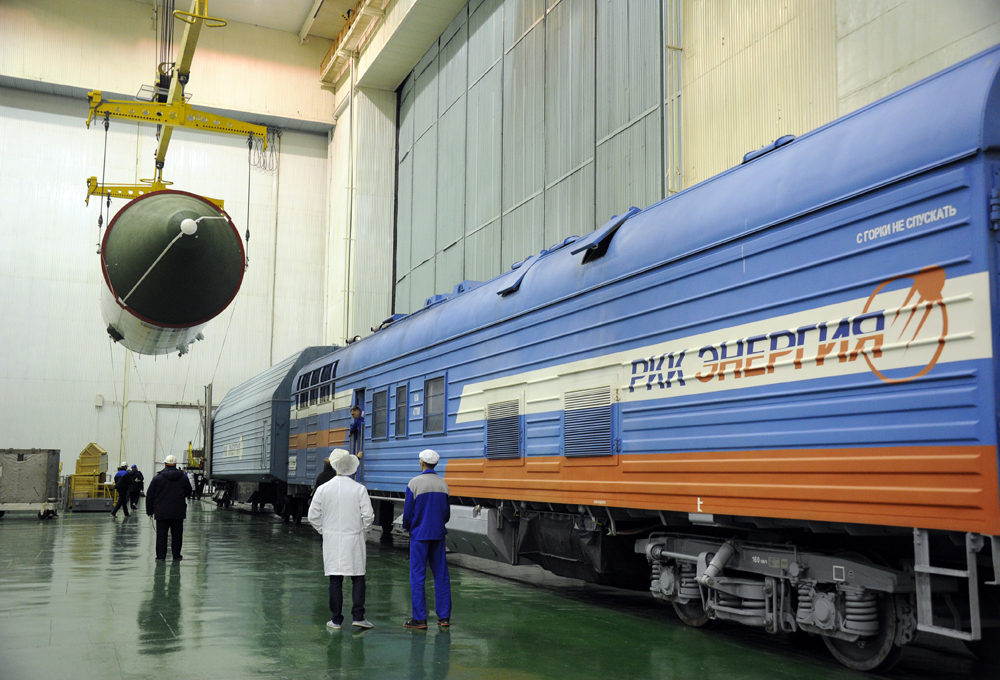 und vom MIK- KA zum Sojus-Träger in der Halle MIK-RN gefahren.
