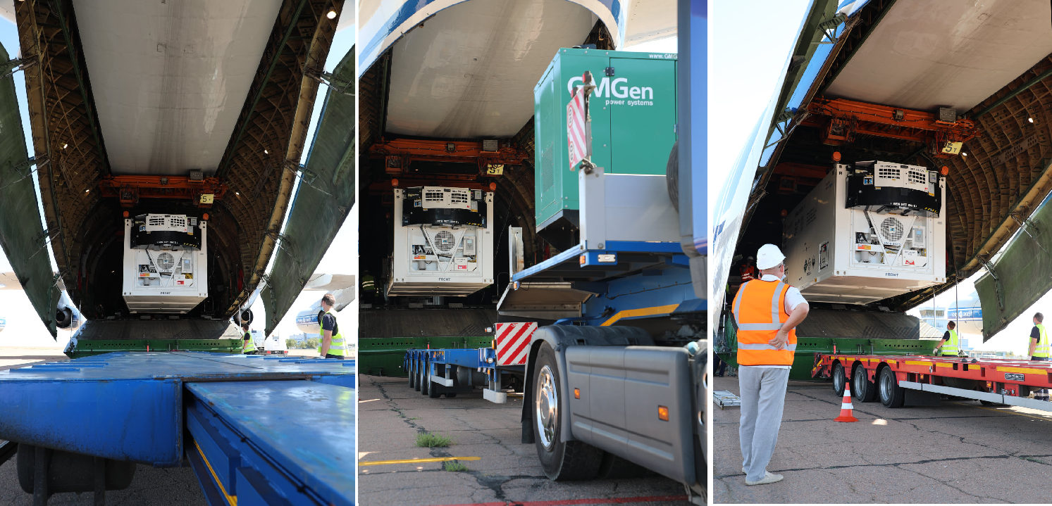 Mit dem gleichen Flug wurden bereits fünf IVL-Geräte, 2.000 Sätze PSA und notwendige Medikamente in ausreichender Menge geliefert.