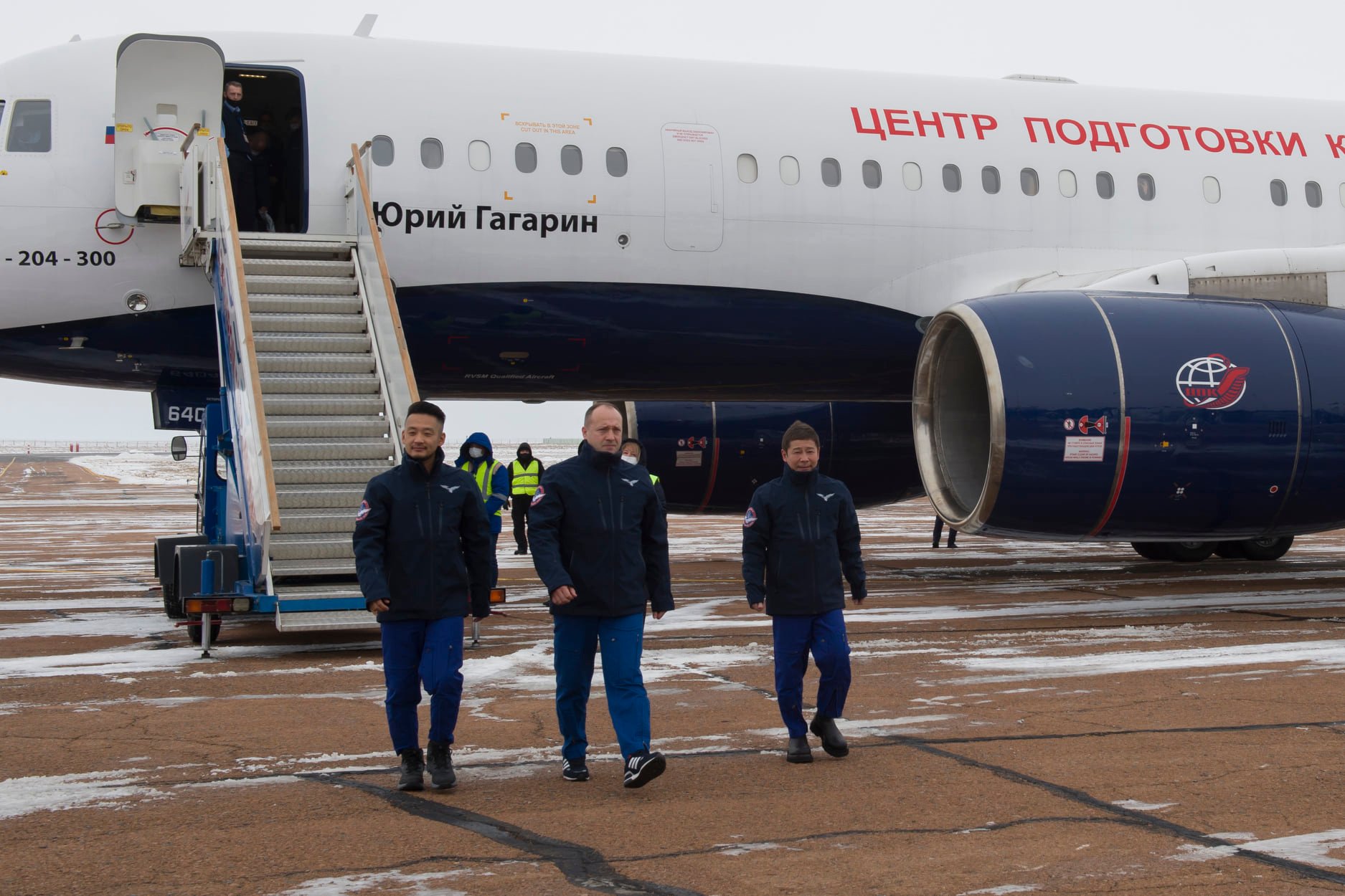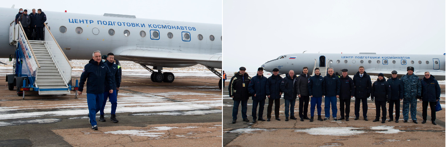 Die Backup-Crew mit Kosmonaut Alexander Skwortsov und Raumflugteilnehmer Shchun Ogiso landeten mit der (immer noch diensttuenden) TU-134 des ZPK Q.: ZPK/Roskosmos https://www.roscosmos.ru/33410/
