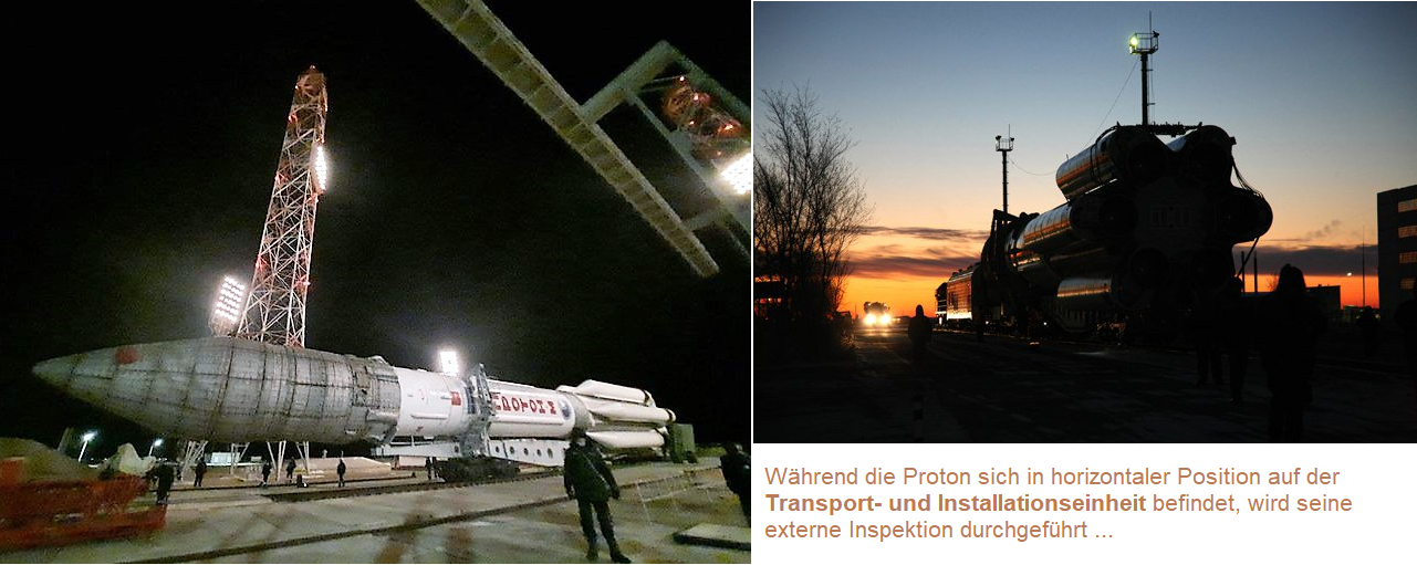 um 11:30 Uhr MOZ beschloß die Staatskommission, die Proton-M-Trägerrakete in den Startkomplex zu überführen