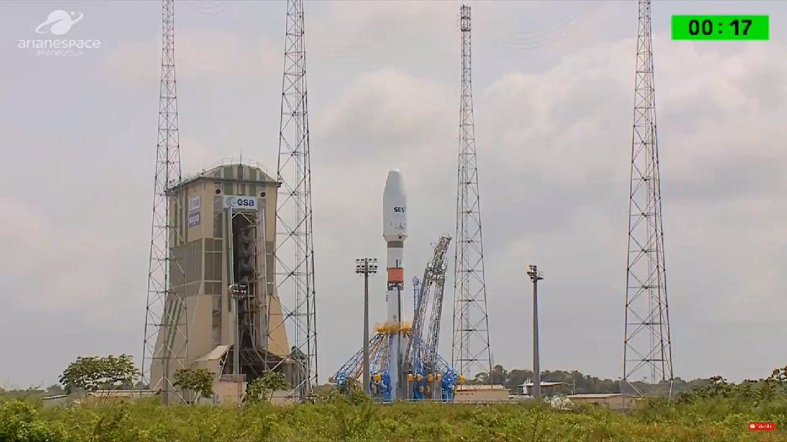 Deswegen in der Tass heute mit Meldung/Paris, daß die Sojus 2-ST (Tropenvariante) für die Mission VS 18 zum RollOut in den Montageturm bereitgestellt ist.