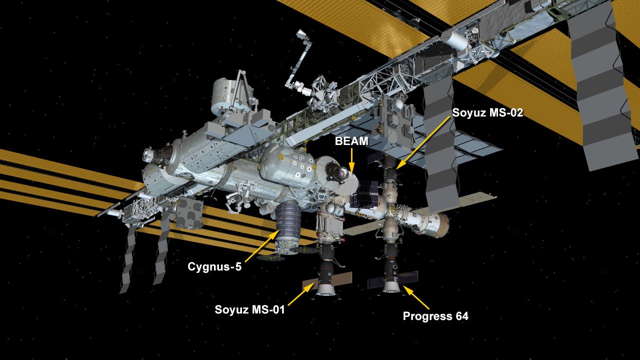 Hier sehen wir, wo Cygnus " an der ISS hängt"