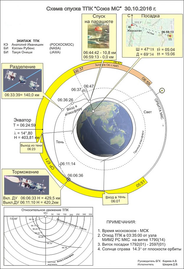 Planmäßig am 30. Oktober wird die Expedition 48-49 Sojus Commander Anatoly Ivanishin of Roscosmos and Flight Engineers Kate Rubins of NASA and Takuya Onishi of the Japan Aerospace Exploration Agency mit der Sojus -MS (Nr. 731) von der ISS ablegen und zurückkehren.
