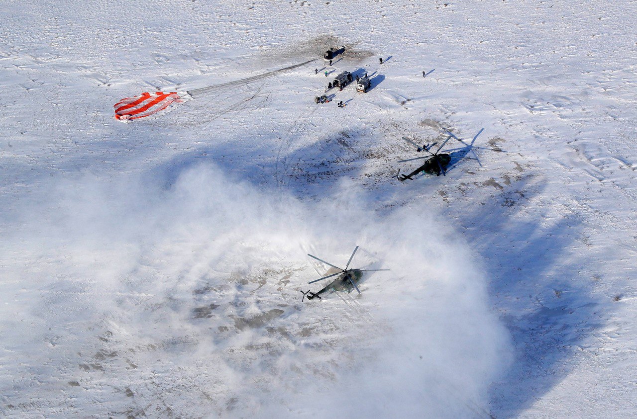 Für die zügige Bergung der drei Raumfahrer sorgten über 200 MA des Bergungsdienstes mit 14 Helikoptern, drei Flugzeugen und 18 Geländefahrzeugen. Die Sichtweite im Landegebiet betrug lediglich sechs bis zehn Kilometer bei einem eisigen Wind aus östlicher Richtung.