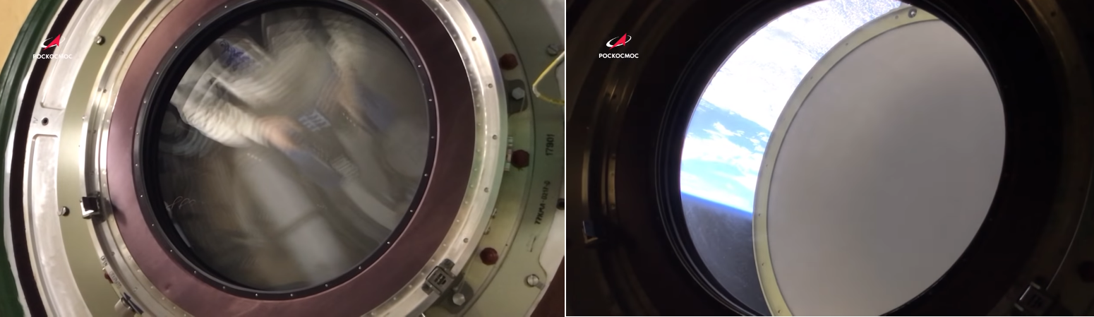 Vorgestern konnte Roskosmos-Kosmonaut Oleg Nowitzki das erste Mal das Bullauge öffnen - ein Moment, der ihm sicher unvergeßlich bleiben wird:
