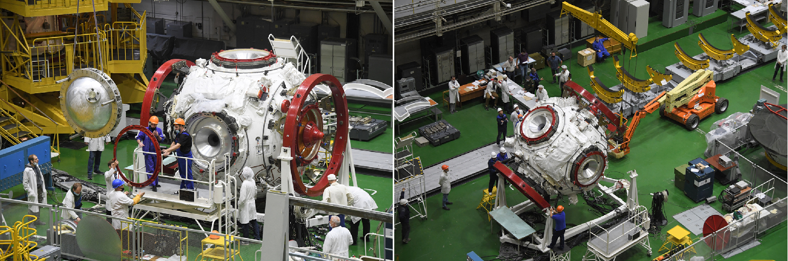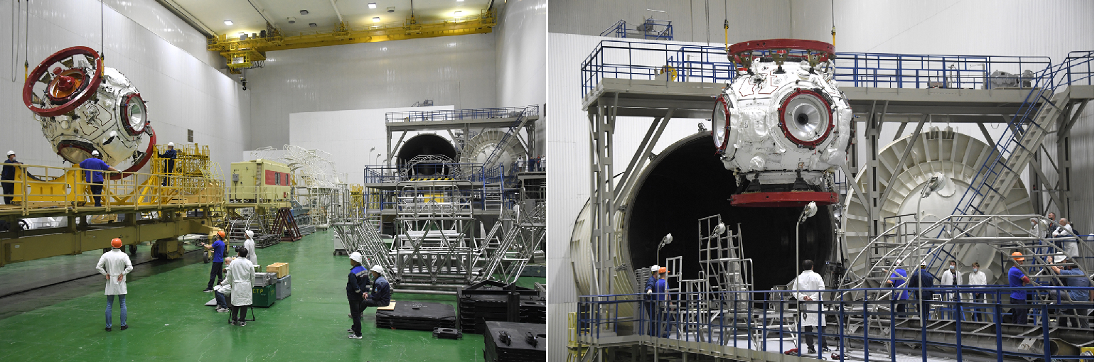 - Das Modul wurde gestern auf die (Hallen)Einschienenbahn verladen und zur großen Vakuumkammer im Montage- und Testgebäude MIK 254 gefahren Q.: RSC Energija https://www.energia.ru/ru/news/news-202 ... 09-20.html / https://www.roscosmos.ru/32654/ mit weiteren Fotos
