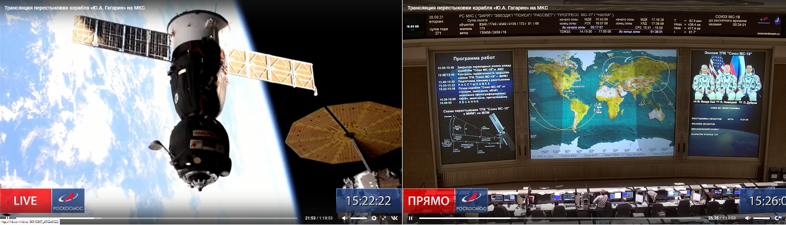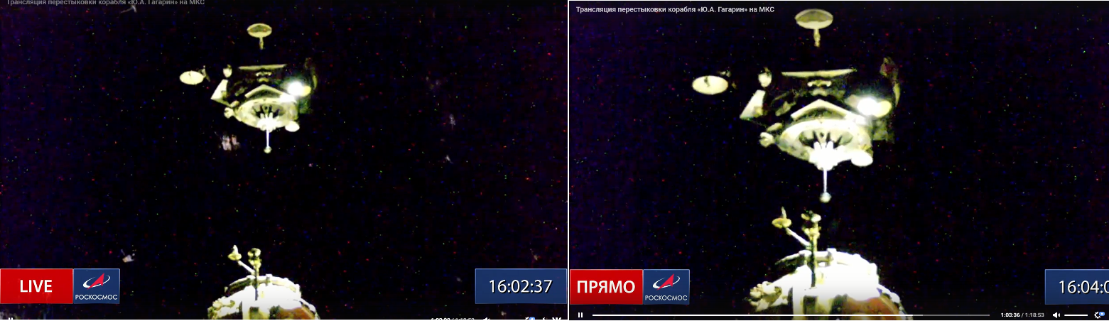 Bildsequenzen aus der Übertragung (eingebettet https://www.roscosmos.ru/32736/ )