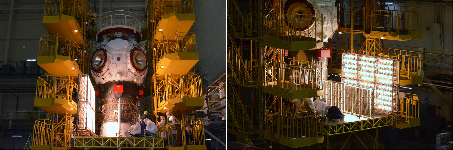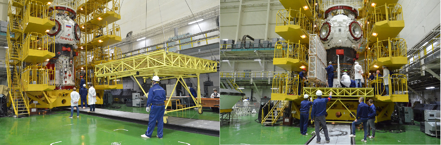 darüber hinaus wird derzeit die Vorbereitung von Fracht und Ausrüstung für die Lieferung an die ISS in einem versiegelten Volumen