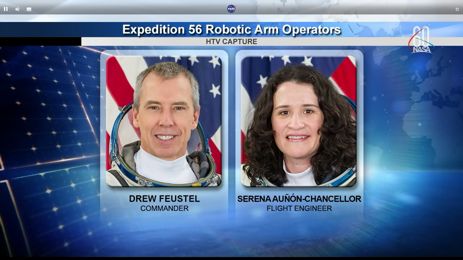 - Heute sind sie am Canadarm, denn der Versorger HTV-7 dockt nicht automatisch an, sondern muß "eingefangen" werden.