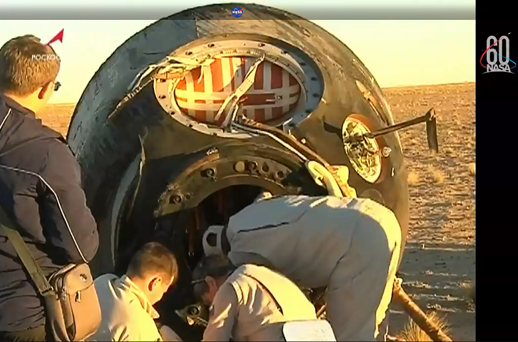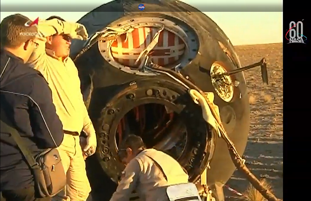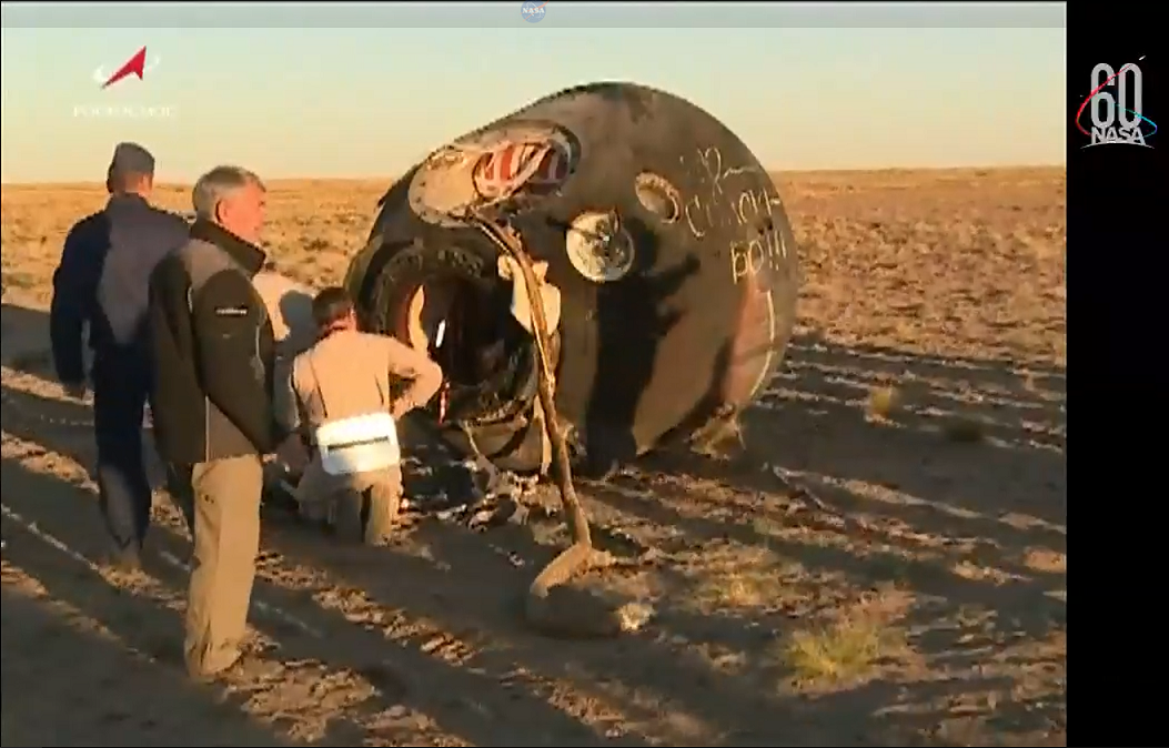 Nachlese - Die (beschriftete) Landekapsel von Sojus MS-08 in der tiefstehenden Abendsonne. Mission erfüllt!