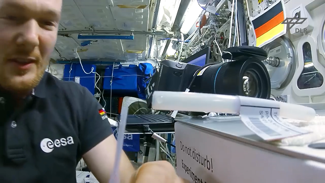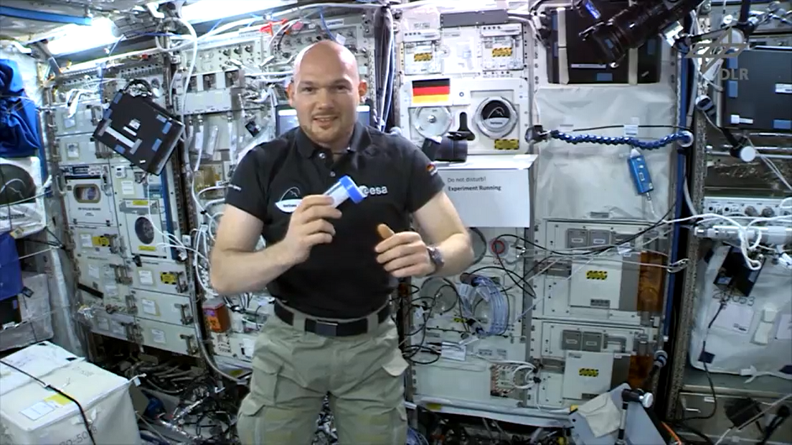 Alexander Gerst experimentiert - mittels Reibung werden Kristallstrukturen erzeugt und illustriert damit die Untersuchung von Plasmakristallen im Orbit auf YT ===> https://www.youtube.com/watch?v=h5AA2pU8LKA
