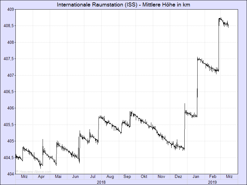 Zur Bahnhöhe der ISS: Die Station wurde in drei Schritten massiv um rd. 4 Km angehoben: