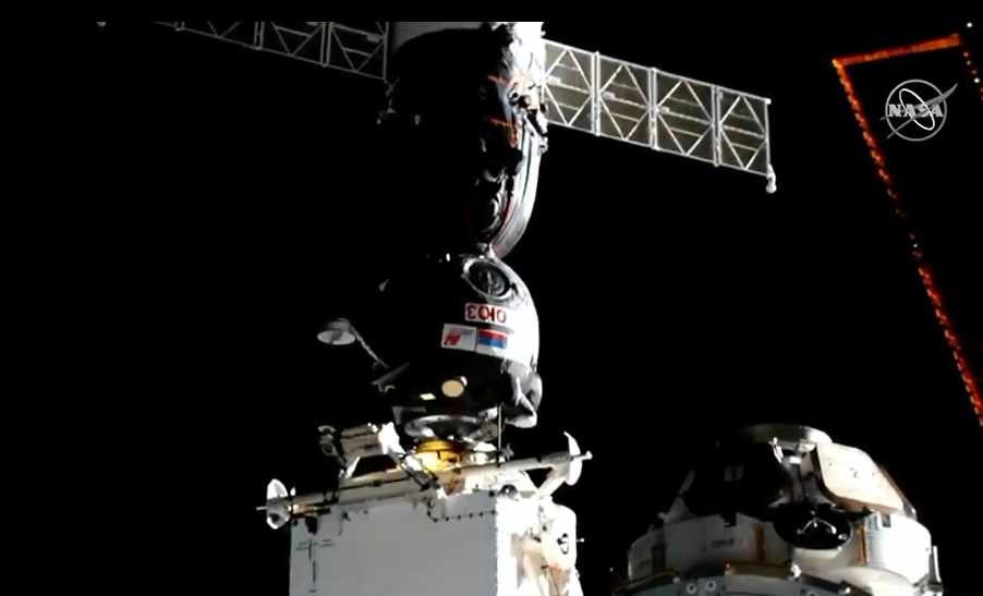 , Sojus + ISS inzwischen verriegelt, elektrische und Medienverbindung hergestellt.