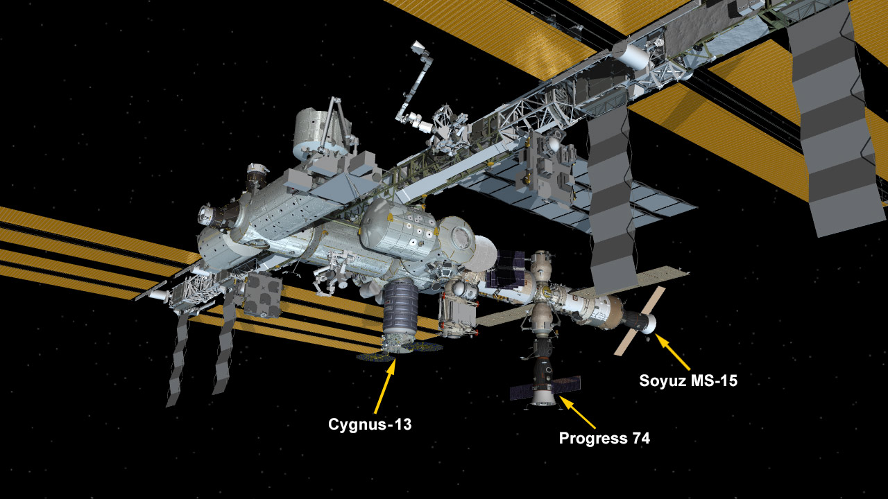 Mal wieder eine aktuelle Belegung der Station nach dem Einfangen des "Cygnus"-Versorgers gestern, am 18. 02. (mit dem Antares-Start)