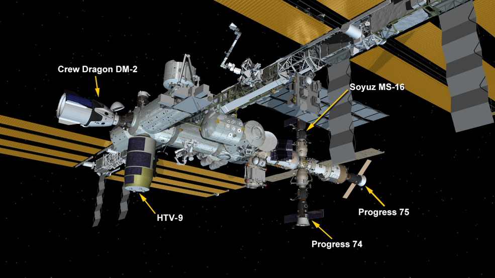 Q.: NASA https://www.nasa.gov/feature/visiting-v ... departures Fünf Raumschiffe sind an die Raumstation angedockt, darunter