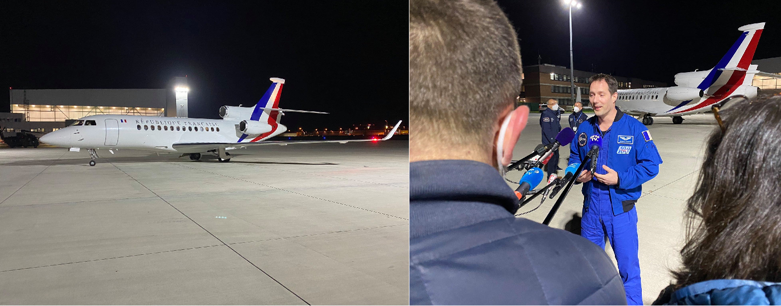 - ESA Astronaut Thomas Pesquet mit guter Laune, nachdem er heute Morgen am Ellington Airport / Houston angekommen war, vor seinem Transatlantikflug nach Köln