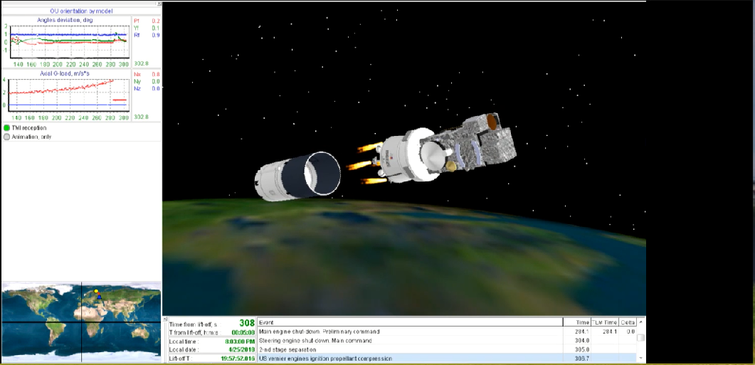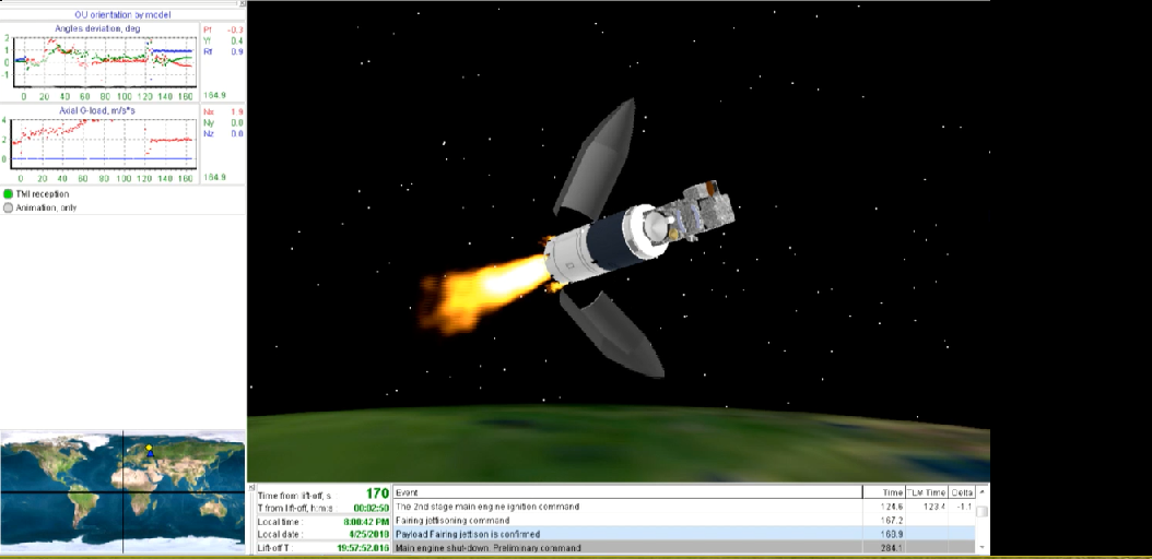 - Trennung 1. Stufe, 2. Stufe hat gezündet; deutlich: die 2. Stufe arbeitet mit 3 TriebwerkenSeparation FairingBrennende der 2. Stufe; Trennung; die Breeze Oberstufe zündet eben /zunächst die Steuer-TW (kleine Flammen)Das Haupt-TW mit der weiteren BeschleunigungNach guten 10 Min. ist Grönland erreicht und danach das nordamerikanische Festland. Deutlich: Der Bahnverlauf weicht von der üblichen "Mit-Erd-Drehung" ab, deswegen der nördl. Startplatz