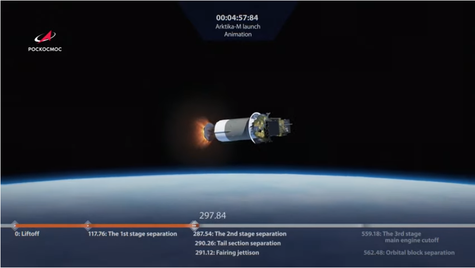 So, nach 2 Stunden in der Bahn meldet Roskosmos "Vollen Erfolg": "Arktika-M Nr.1" wurde im Zielorbit abgesetzt.