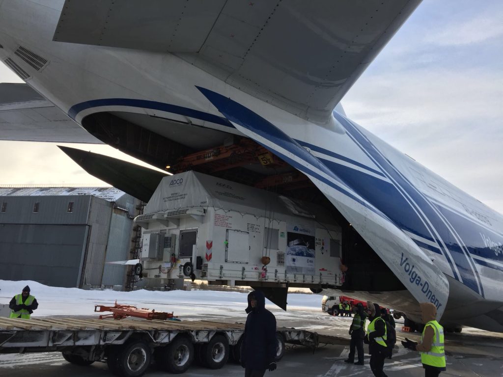Der Satellit selbst, gebaut von Thales Alenia in Cannes wurde im März von Toulouse mit dem Carrier "Volga-Dnepr" nach Archangelsk transportiert, wie seine Vorgänger auch.
