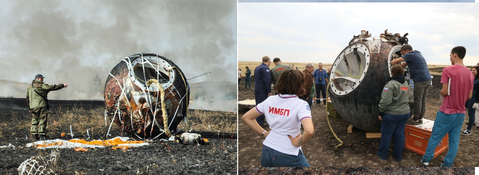 Es gibt eine Reihe interessanter Bilder zum (auch etwas feurigen) Ereignis, zurückzuführen auf die Entzündung des Steppengrases durch den Brems-Impuls vor dem Aufsetzen.
