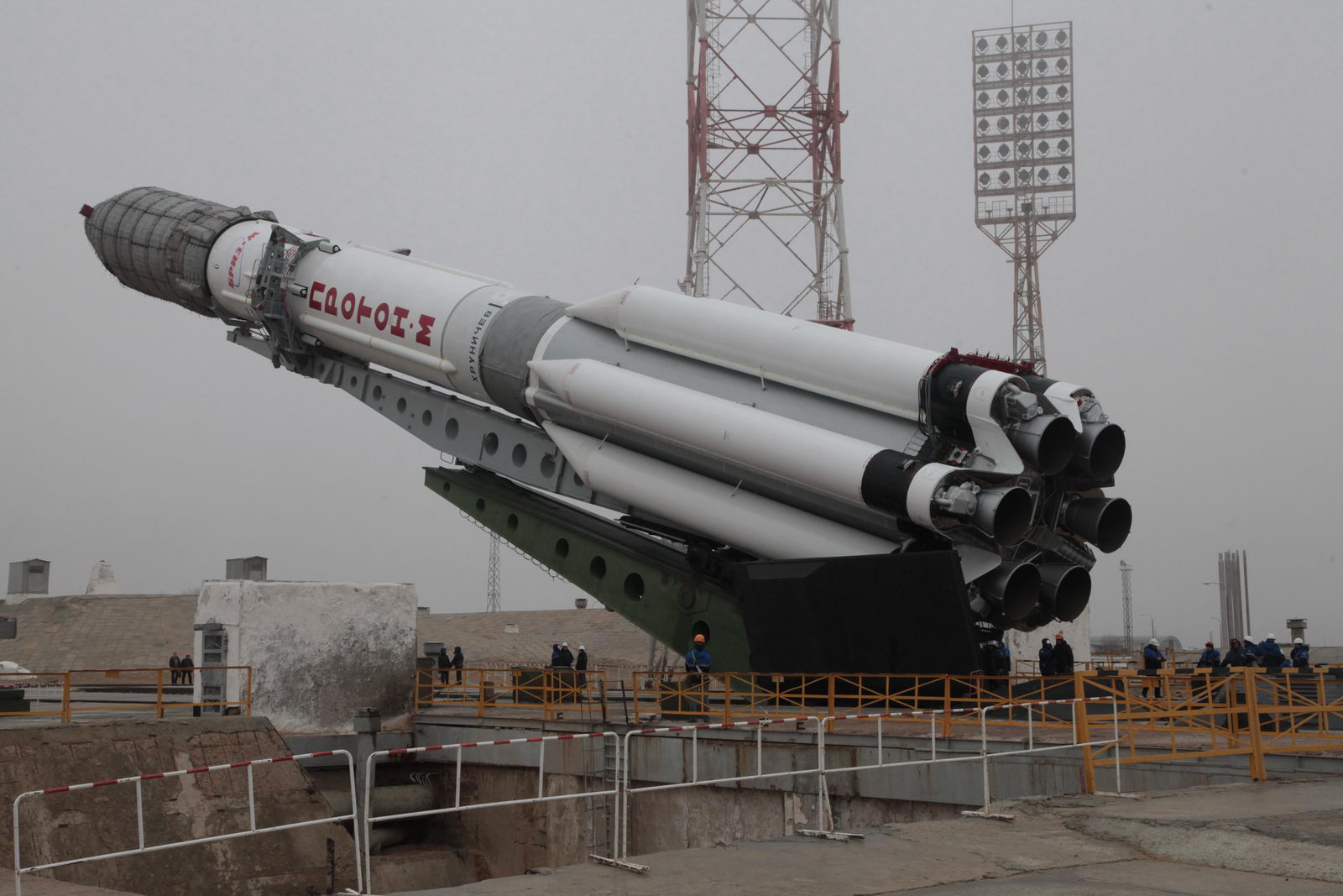 на космодроме Байконур состоялся вывоз на стартовый комплекс ракеты-носителя «Протон-М» с разгонным блоком «Бриз-М» и аппаратами российско-европейской миссии ExoMars-2016 - демонстрационным спускаемым модулем Schiaparelli («Скиапарелли») и орбитальным модулем Trace Gas Orbiter.
