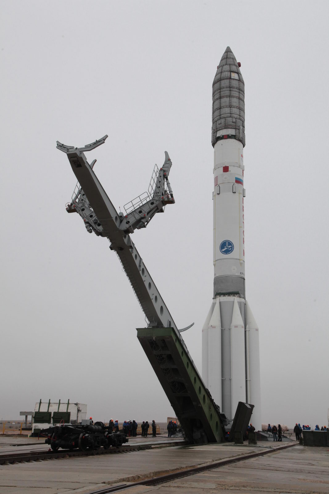 - Nach mehrfacher Startverschiebung aus nicht ganz klaren Gründen - wahrscheinlich wetterbedingte Verzögerungen der Zulieferung von Komponenten der zweiten Stufe, die die Integration wiederum in Verzug brachte - steht der Starttermin nun fest und der Träger auf dem Starttisch in Baikonur natürlich:
