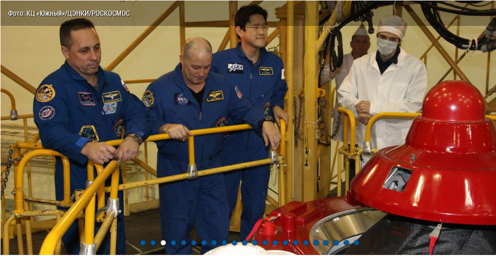 Besichtigung des Kapselinneren, Anziehen der Sokol-Raumanzüge, Sitzproben ...> Photostrecke Roskosmos: https://www.roscosmos.ru/24427/