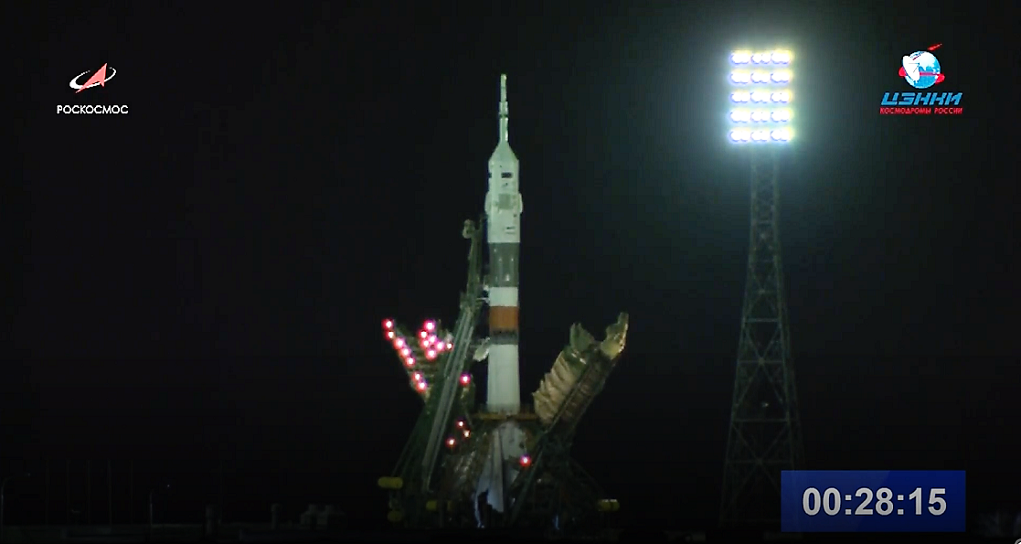 Glückwunsch an Roskosmos und Gratulation für den 141. Start eines Sojus-Raumschiffes, davon 68 x mit einem Sojus-FG Träger