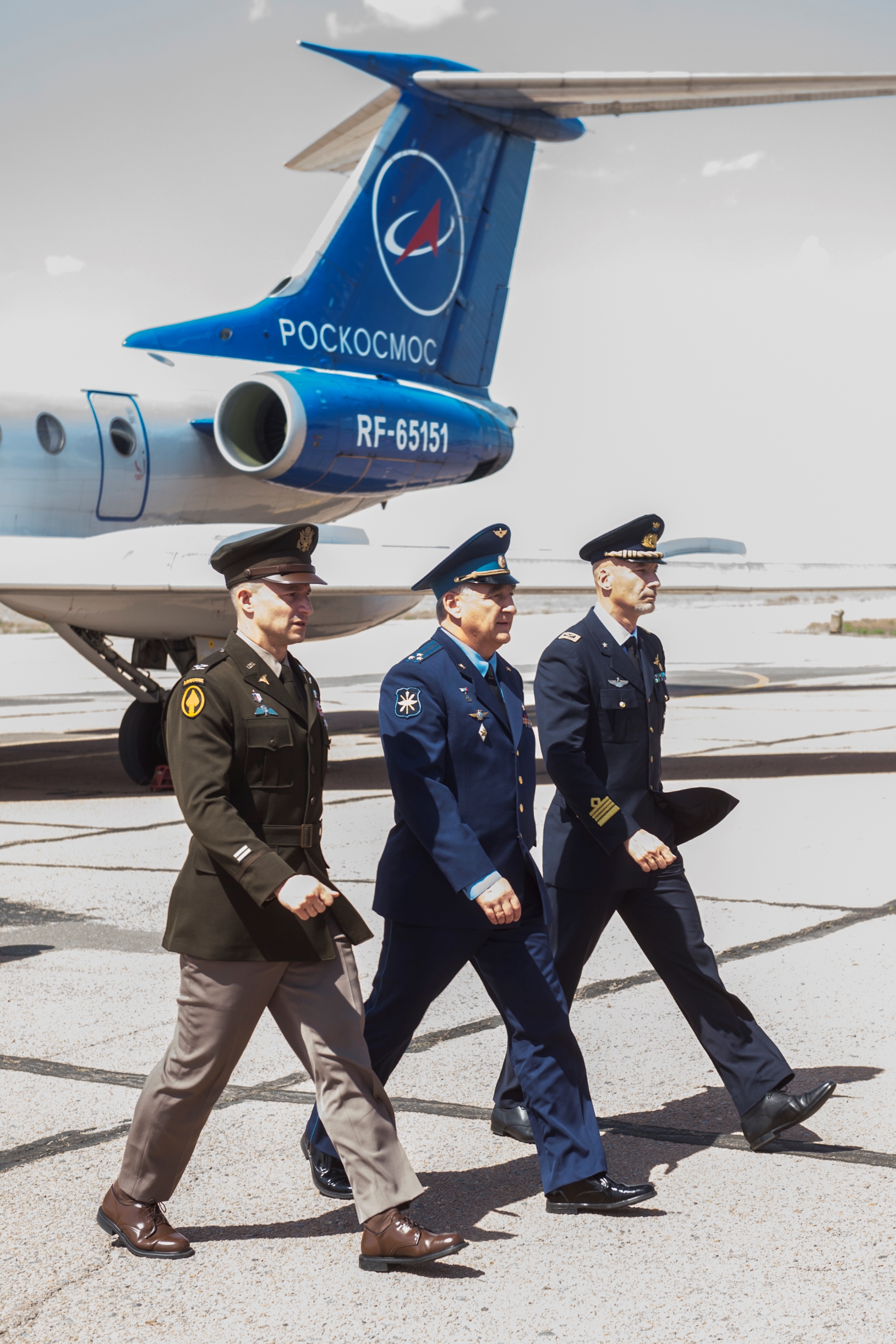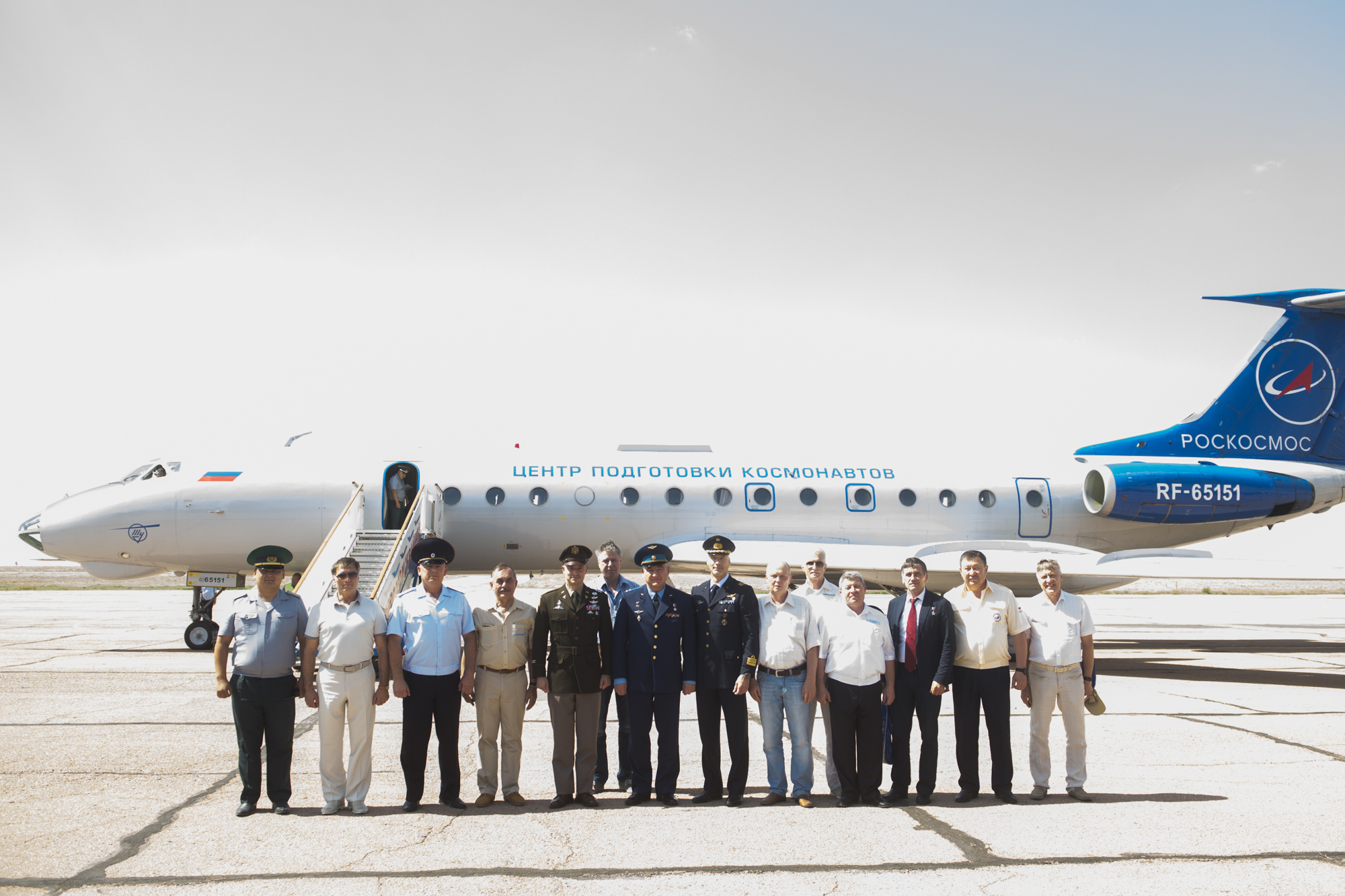 Heute morgen wurde die Crew und die Dublés der ISS-Mission 60/61 im Moskauer Sternenstädtchen verabschiedet und trafen mit den Kosmonautenshuttles TU-134 des ZPK in Baikonur ein