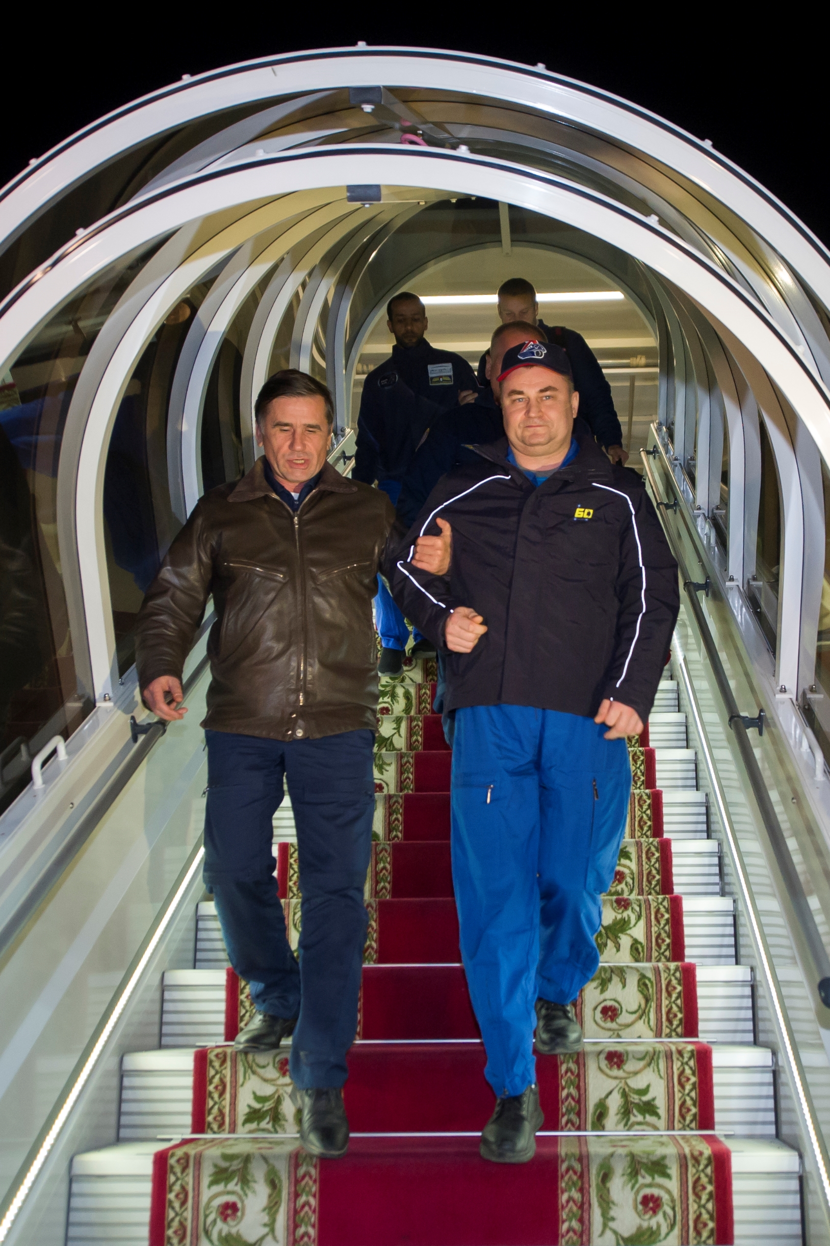 Alexei Owtschinin und Hazzaa Al Mansuri wurden nach http://gctc.ru/main.php?id=4778 heute noch in das Sternenstädtchen geflogen, um sich der üblichen medizinischen Untersuchung zu unterziehen und ein Programm mit wissenschaftlichen Experimenten und Reha-Maßnahmen nach dem Flug durchzuführen.