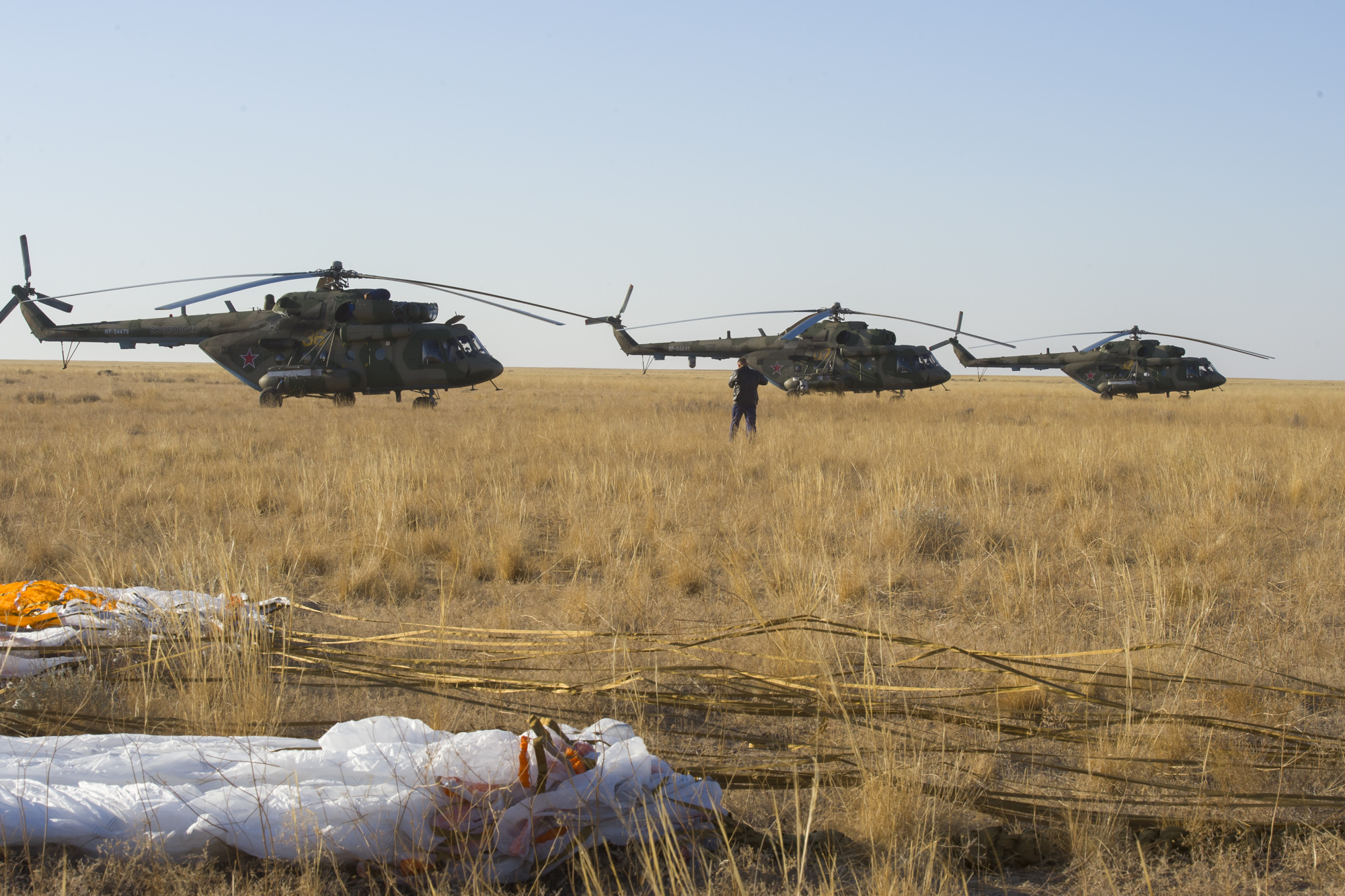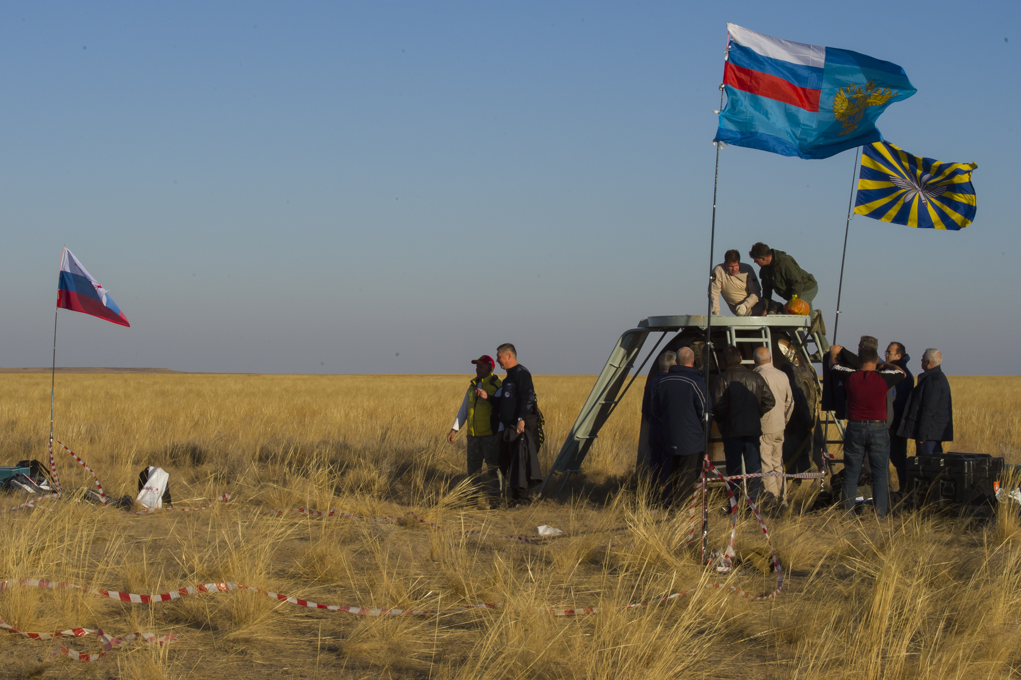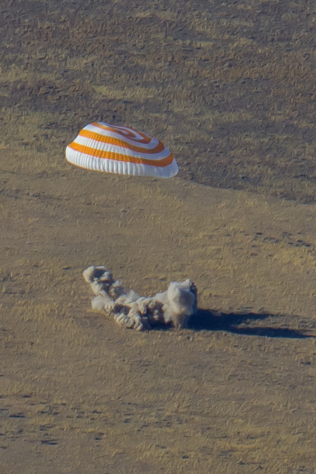 Im Rückblick gibt es heute zwei erstklassige Fotostrecken von der Landung wie der Zeremonie am kasachischen Flughafen Dsheskasgan vor Abflug nach Koroljow