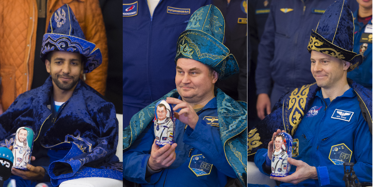 Am FH Dsheskasgan wird jeder Ehrenbürger Kasachstans, erhält die Traditionskleidung und als Geschenk die persönliche Matrjoschka mit den jeweiligen beiden anderen Mitfliegern drin :-)