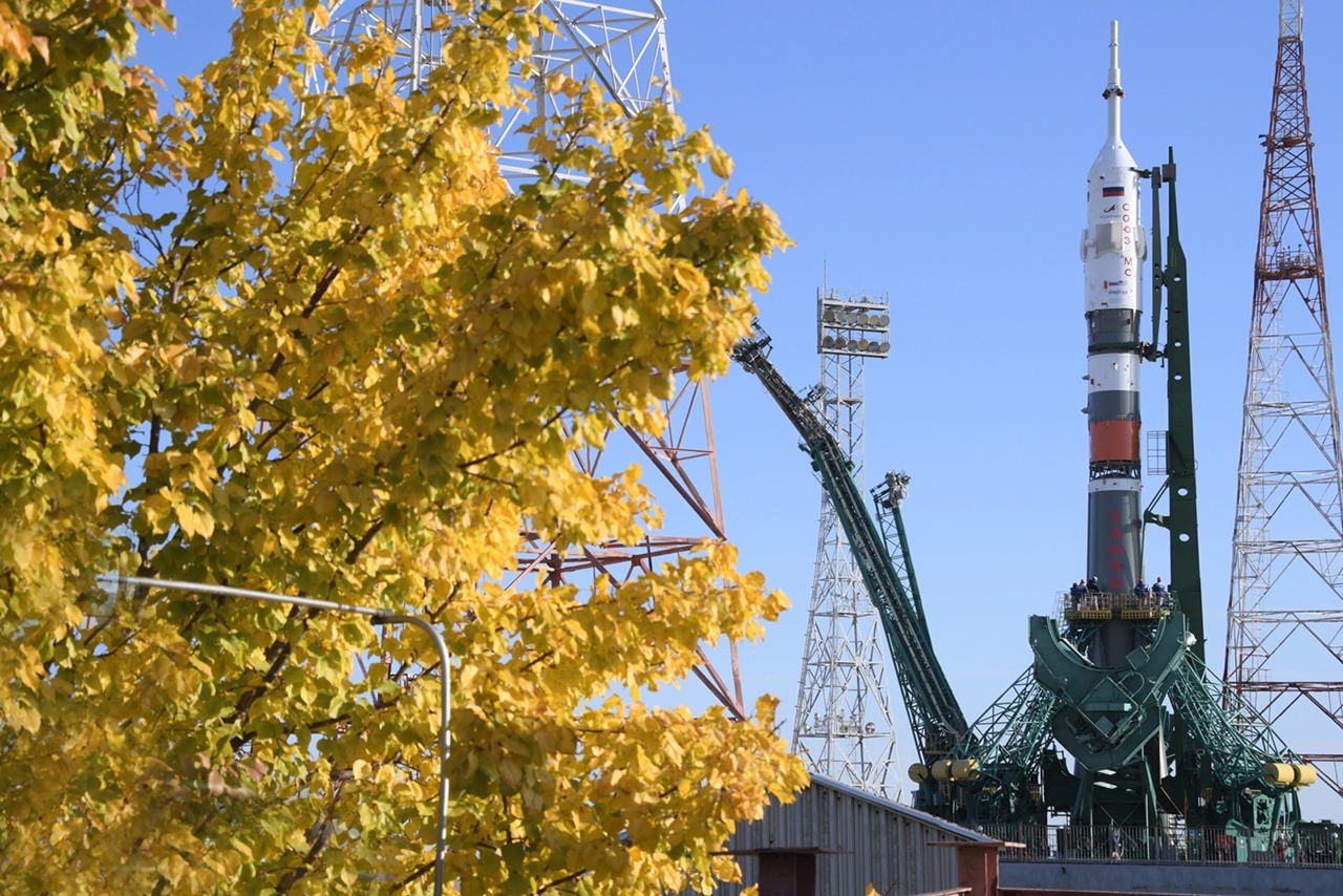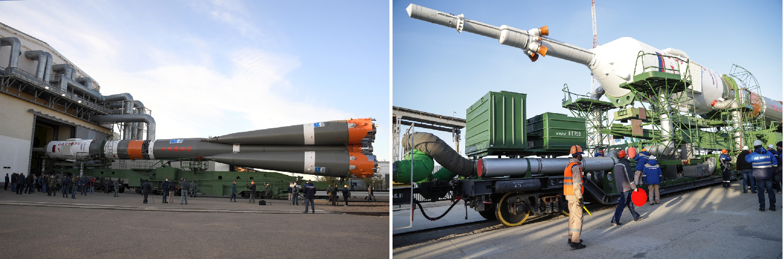 Wie VK. com heute berichtet, wurde der Träger mit Sojus MS-17 in der Früh - traditionell 07:00 Uhr Ortszeit - aus der Halle gefahren ...