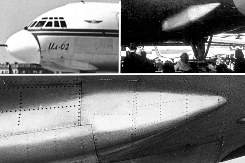 Auf dem Aerosalon 1965 bekamen die Fachjournalisten von Flight International einen der Prototypen der Il-62 von Mitarbeitern von Aviaexport und dem OKB Iljuschin gezeigt. Zu den Rumpfwülsten am Bug erfuhren sie, daß es sich hierbei um die Verkleidung der Notausstiegsrutschen für die Testflüge handelt.