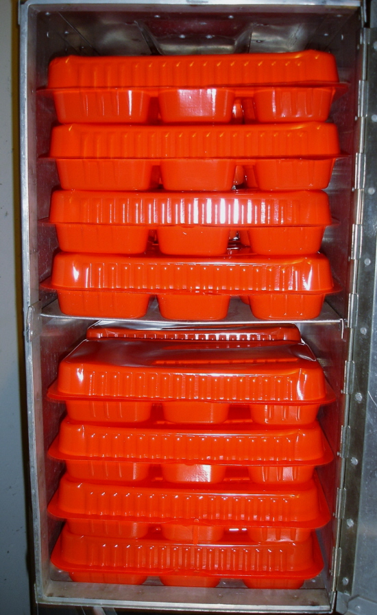 Die Blick in den Lunchboxen-Container weckt sogar sofort Gerüche im Gedankenfach. Im Vergleich die beiden LB-Arten: Das Modell mit den durchsichtigen Deckhauben ließ den Blick frei auf den Inhalt und wenn da was verrutscht war, konnte man es vor dem Servieren richten. Die ganz roten Dinger gingen so raus, wie man sie entnahm, und dann gab es schon mal eine Beschwerde, dass die Butterrose am Deckel klebte oder der Obstsalat "suppte"...