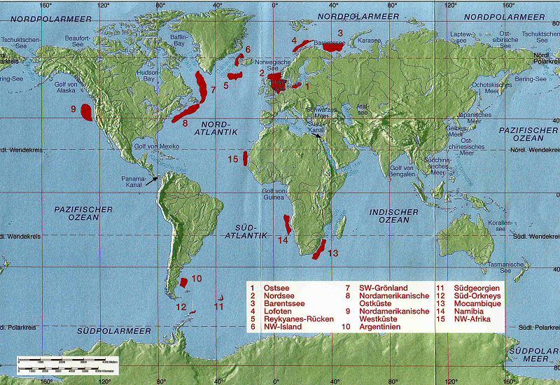 Daraus auch eine Übersicht über die (damaligen) von uns bedienten Fanggebiete