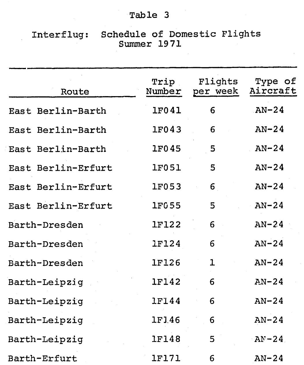 Man könnte behaupten, daß die Mehrzahl der Flugnummern in dem Bericht falsch ist. Beim Abschreiben aus dem "geheimen" Flugplan der INTERFLUG hat die CIA-Schreibkraft unser großes "I" wie in Nordamerika üblich als "1" angesehen.