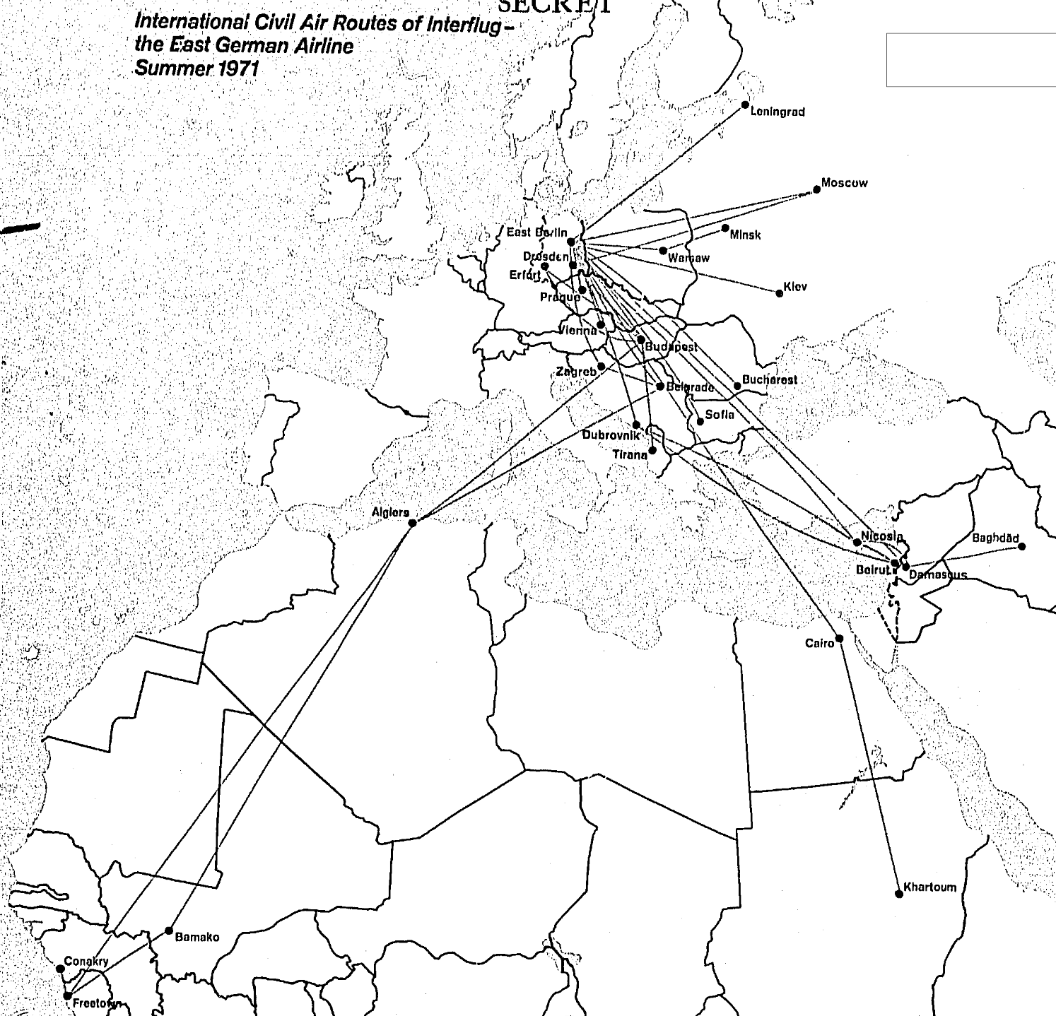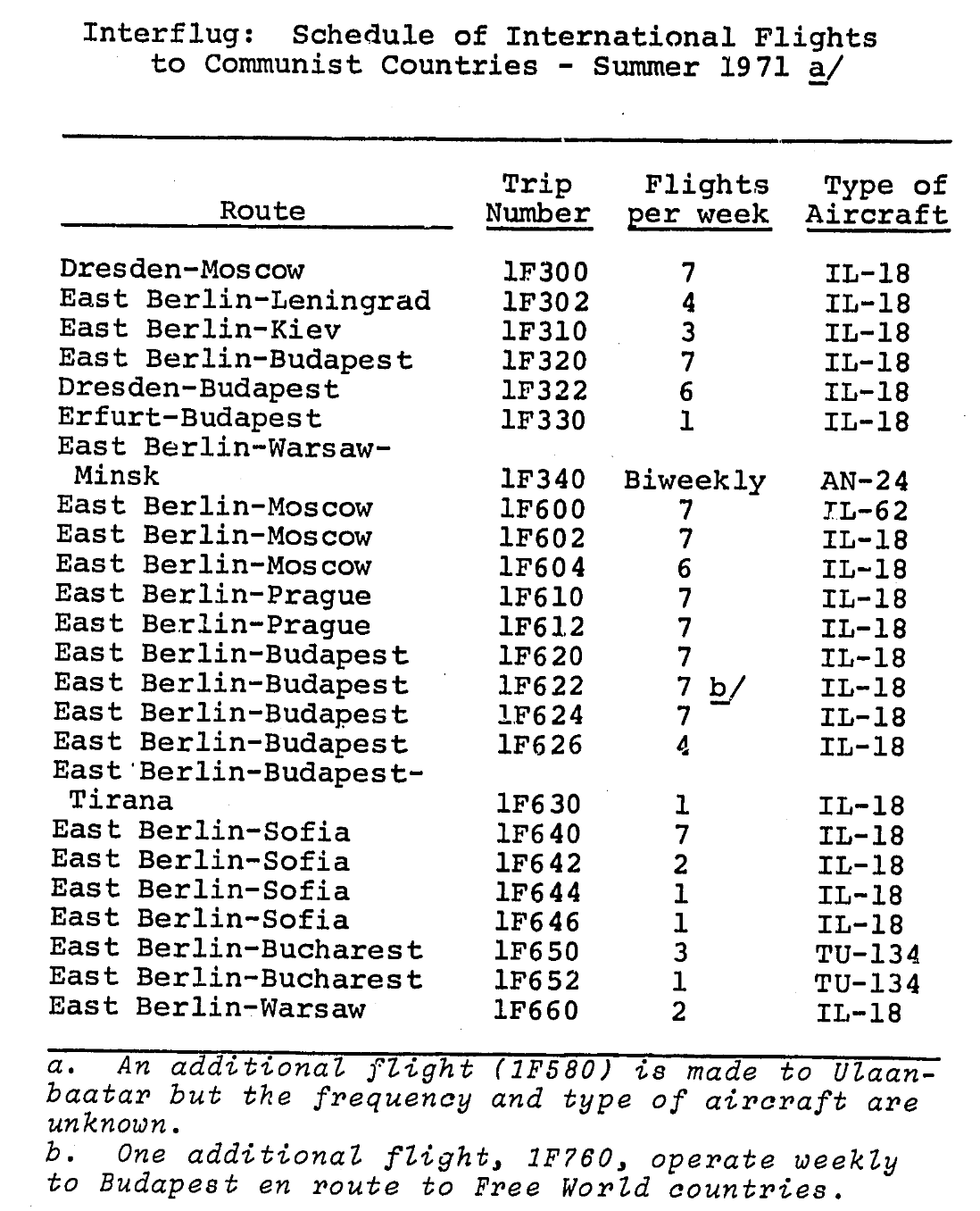 Hier sind weitere weltweite Flugverbindungen der Interflug für 1971 enthalten, lt. CIA-Dokumenten. Ist das richtig das sich hinter den nicht aufgeführten Flügen mit 900er-Flugnummern tatsächlich Charterflüge "verbergen"? Meine Frage bezieht sich auf das Jahr 1971.