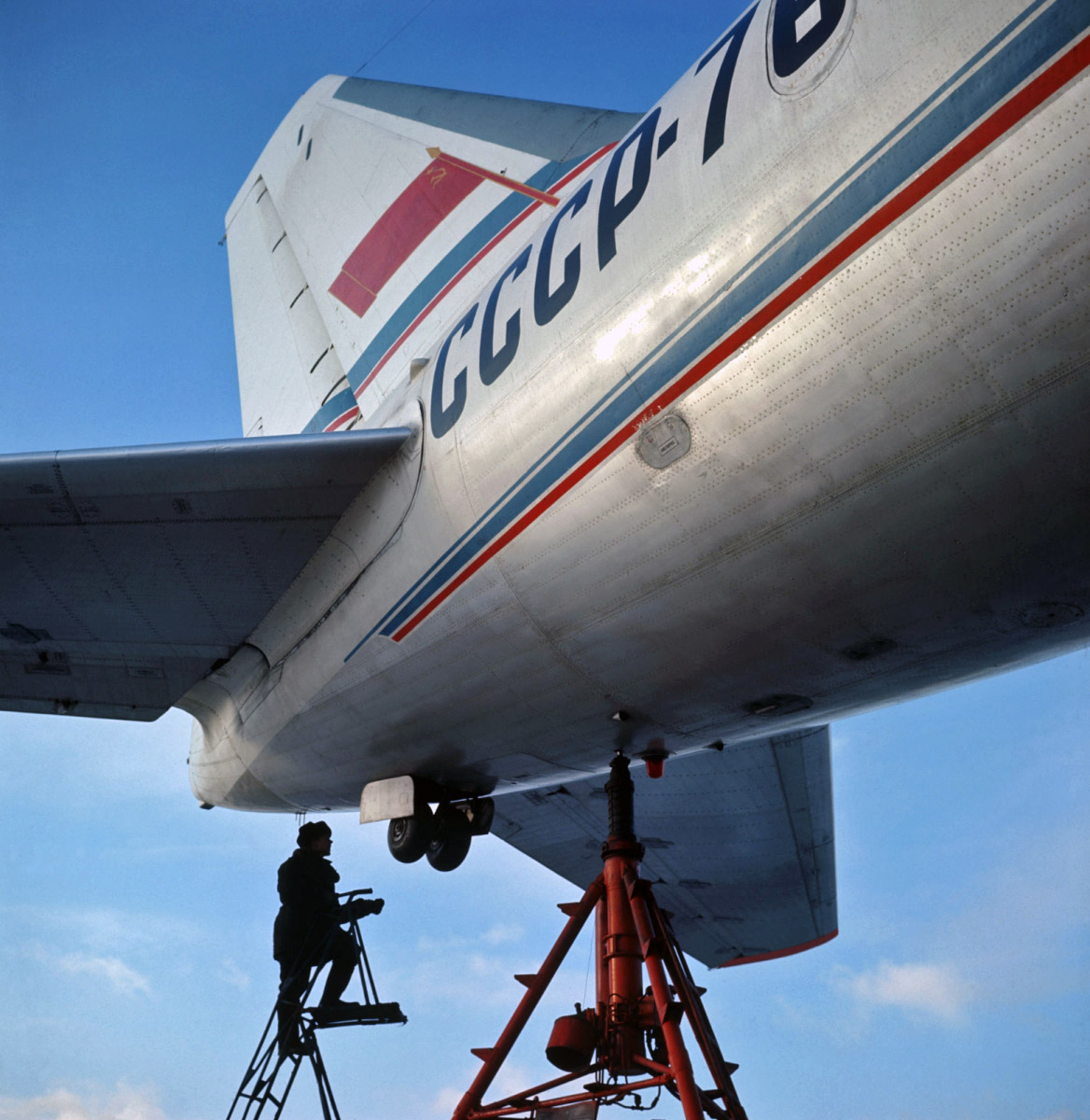 Ich glaube nicht, dass es eine Art Hecksporn war. Dazu erscheint mir das Hilfsfahrwerk zu filigran. Ich denke, es dient, wie bei der IL-62, als Stütze bei nicht optimalen Beladungsverhältnissen.