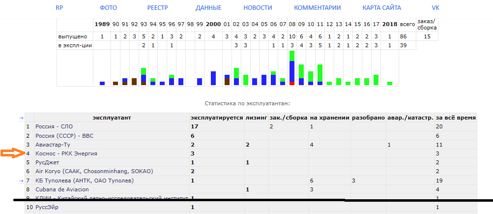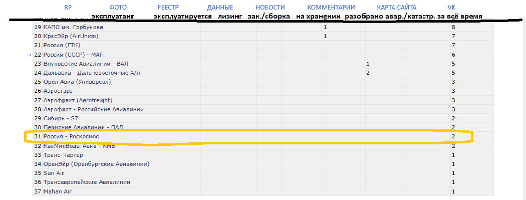 Zunächst In der Statistik wie bekannt hat Rossija Roscosmos zwei Maschinen - siehe Listenplatz 31 mit dem Status "ständig"