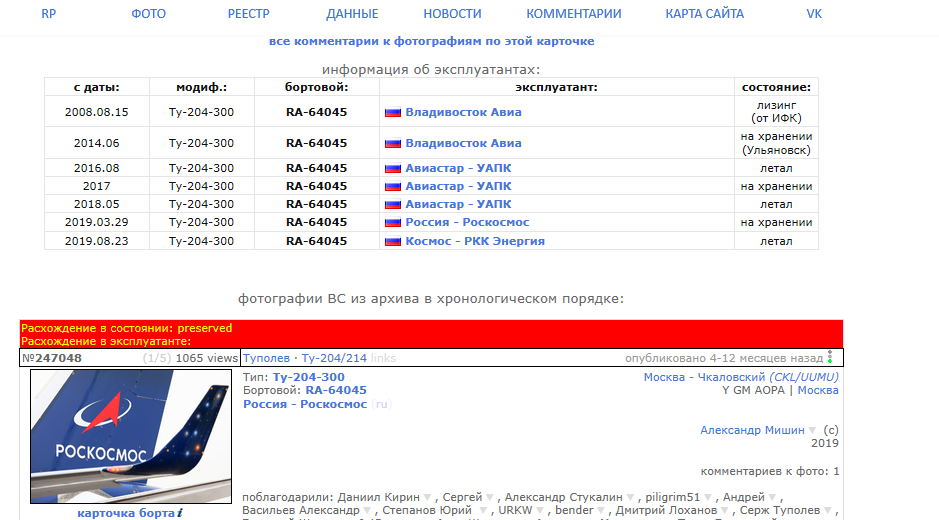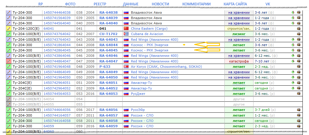 Um nochmal zu TU-204 (nicht -214) zurückzukehren: Nach der Statistik - da kann man hier reinsehen - https://russianplanes.net/planelist/Tupolev/Tu-204/214