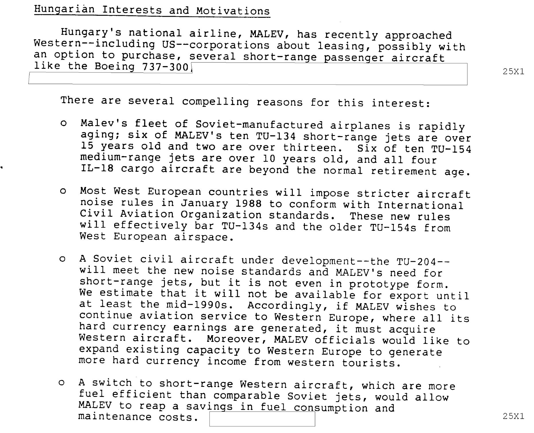 MALEV und Tu-204 spielt in diesem Dokument des CIA aus dem Jahr 1986 auch eine Rolle: