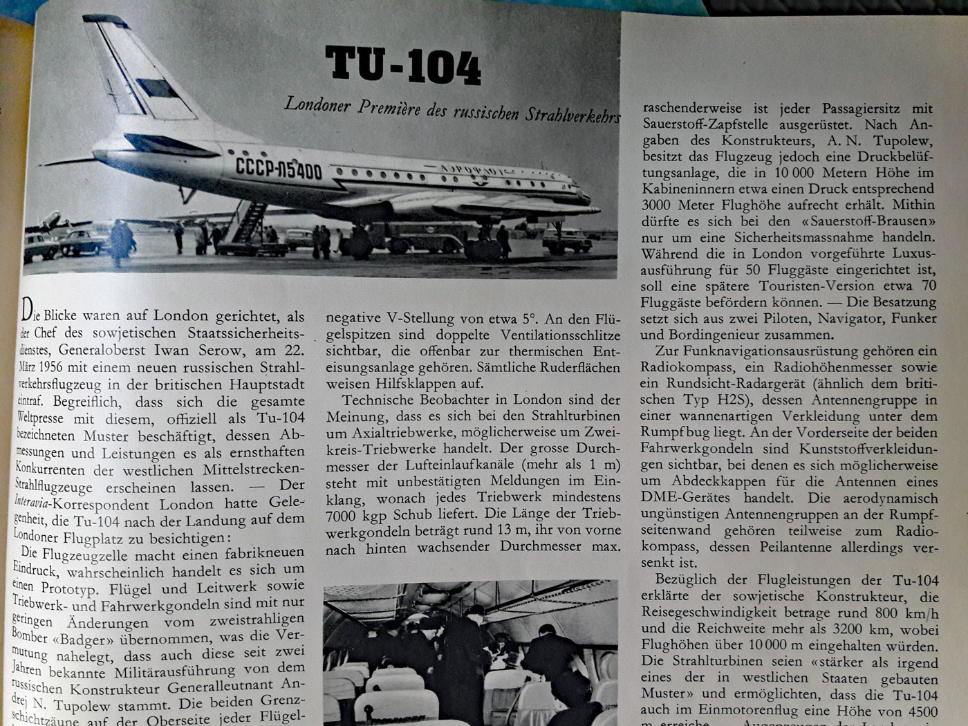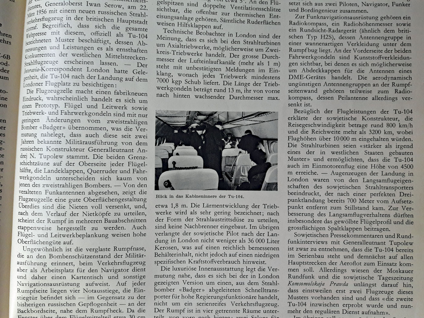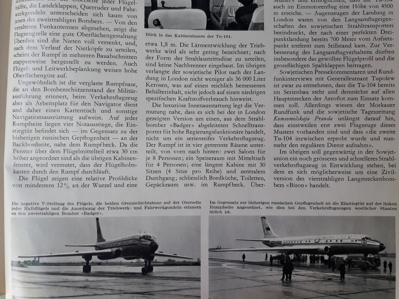 Re: Tu-104, Bericht in INTERAVIA von 1956