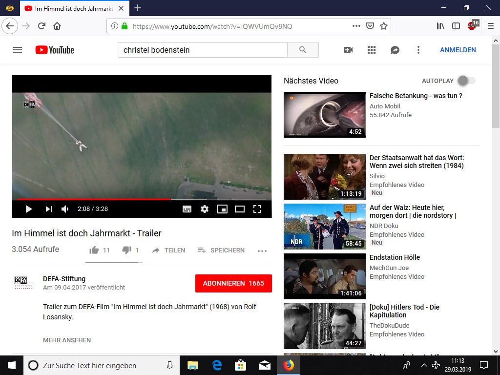 Ich konnte heute bei Youtube eine kurze Trailer-Szene aus der Filmkomödie "Im Himmel ist doch Jahrmarkt [DDR 1969] mit Christel Bodenstein in einer Hauptrollen sichern.