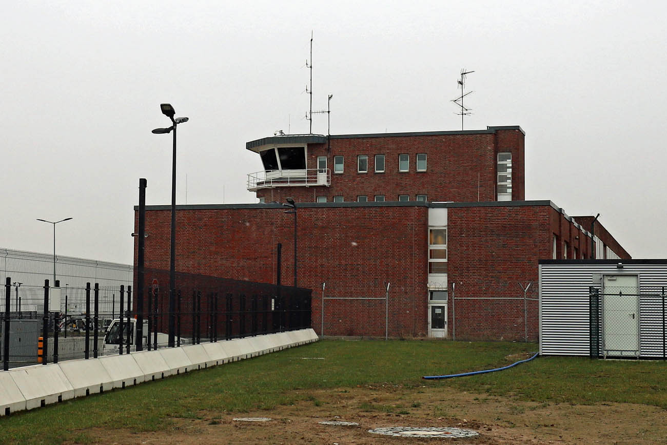 Das ist das Gebäude der Flughafenfeuerwehr im Nordteil an der Ramp 1.