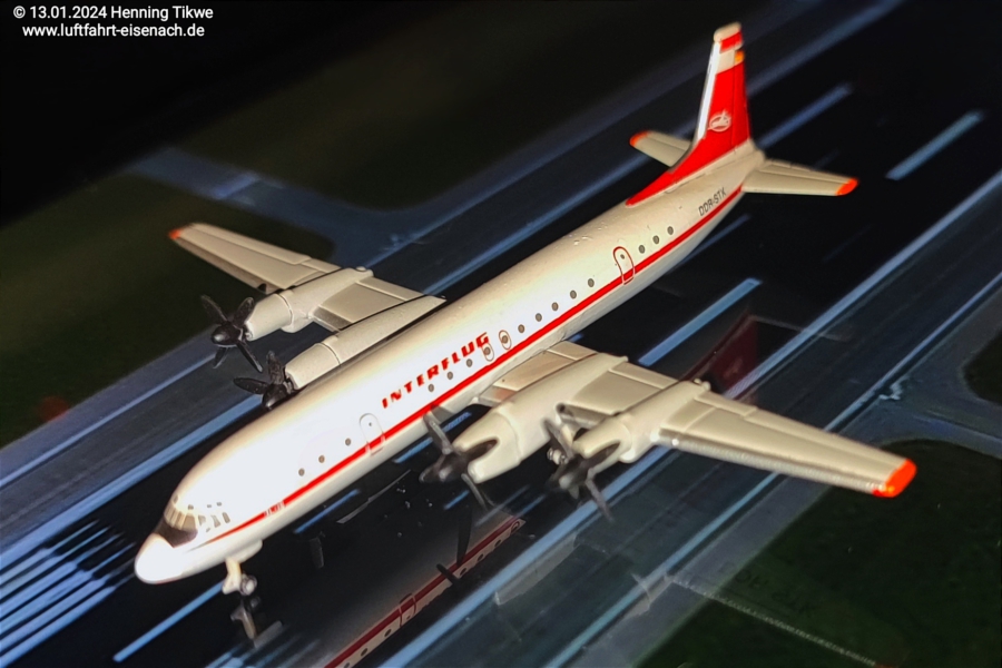 Es handelt sich um die ILJUSCHIN IL-18E der INTERFLUG mit dem Kennzeichen DDR-STK.