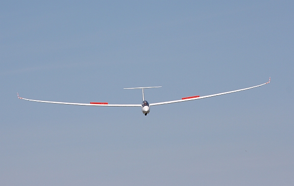 Nach einigen Minuten haten Kämpfens in zerrisener Blauthermik galt es dann, das gute Stück heil wieder auf die Erde zu bringen und an der Stelle habe ich begriffen, warum dieses tolle Flugzeug nichts für Anfänger ist. Obwohl wir sehr starken Gegenwind hatten und ich die Klappen voll ausfuhr glitt und glitt und glitt und glitt die Kiste...... und wollte eigenlich nicht aufhören zu fliegen. Für einen kurzen Moment musste ich an die unzähligen Flüge mit der Rhönlerche denken, die ich vor vielen Jahren machte, bei der ich mir das eine oder andere Mal wünschte, dass das Flugzeug besser gleiten würde.