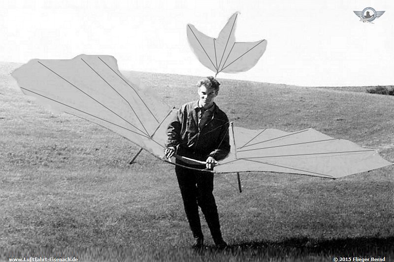 Bernd mit einem Liliental-Gleiter 1966 auf dem Flugplatz Stölln.