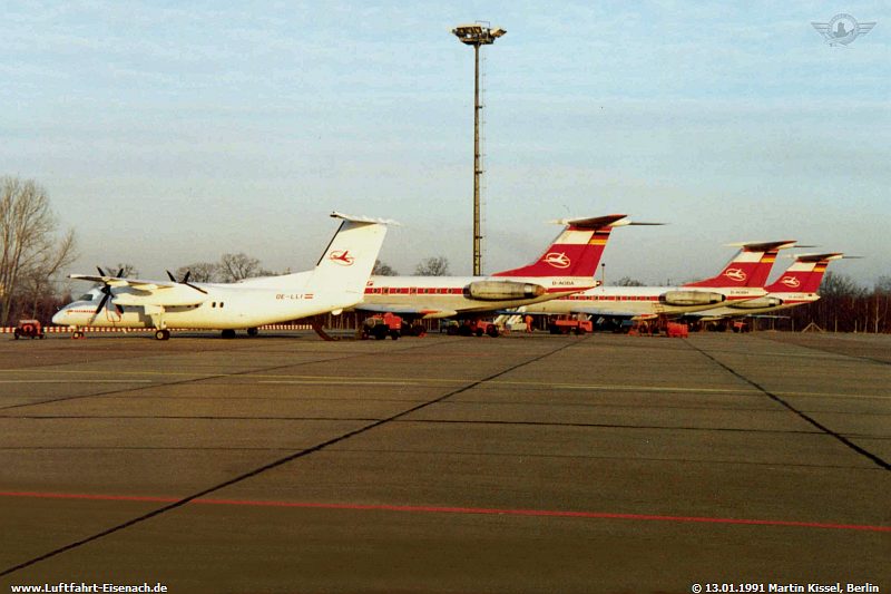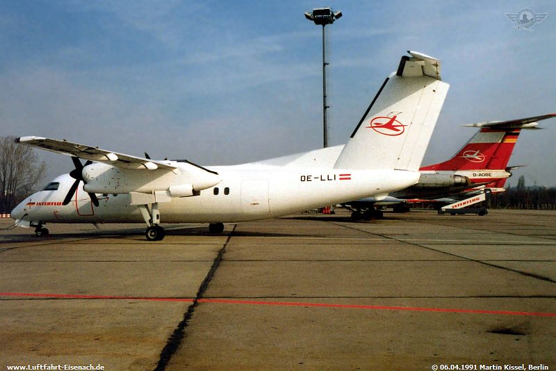 Die Dash-8 OE-LLI flog für die Interflug hauptsächlich die Strecken Berlin - Warschau, Berlin - Prag und Berlin - Copenhagen.